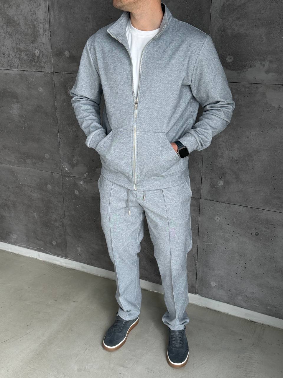• Деталі: Акуратна олімпійка на блискавці та штани з імітацією стрілок створюють зібраний силует, що доречний і в офісі, і на неформальній зустрічі.
