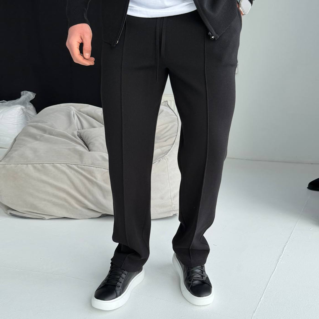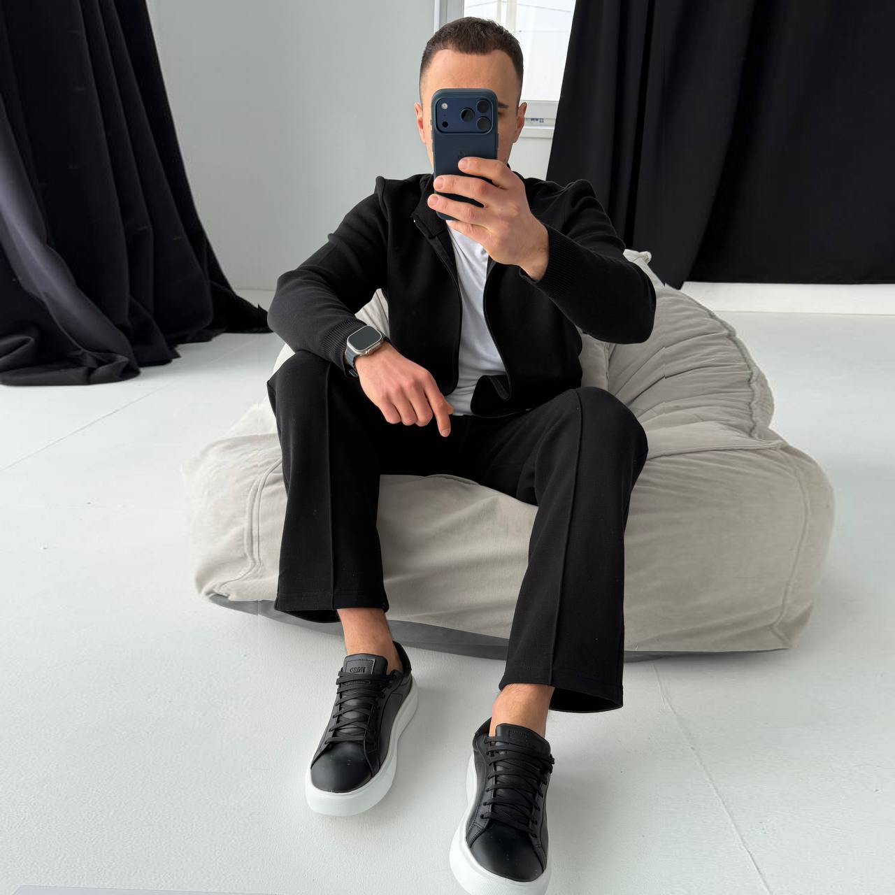 Спортивний костюм чорного кольору преміальної якості — стильна та практична модель, створена як власна розробка з увагою до кожної деталі. Виконаний із натурального матеріалу зі складом 90% бавовна / 10% еластан — ідеальне поєднання для комфортного щоденного носіння. Тканина м’яка, приємна до тіла, добре пропускає повітря та водночас має достатню еластичність, що забезпечує свободу рухів і бездоганну посадку. Костюм добре тримає форму, не кошлатиться та зберігає насичений чорний колір і охайний вигляд навіть після багаторазового прання. Якісне пошиття, продуманий крій і лаконічний сучасний дизайн роблять цю модель універсальним вибором як для повсякденних образів, так і для активного відпочинку чи комфортного проведення часу.