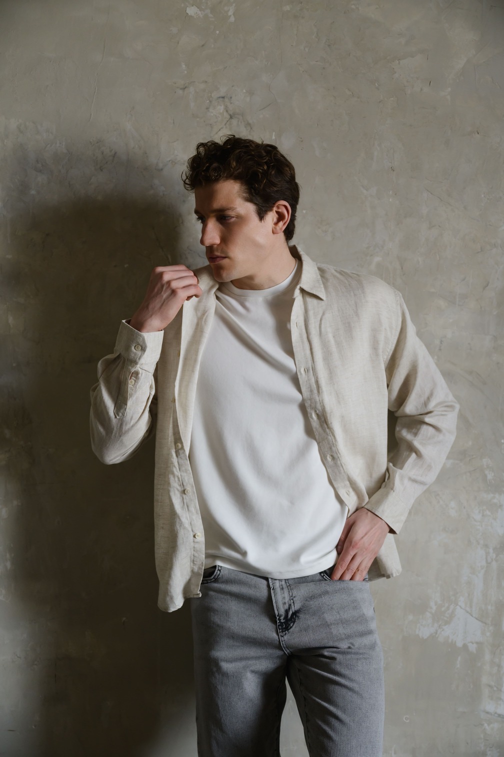 Стильна та легка сорочка вільного крою, створена для твого комфорту в теплу пору року. Завдяки поєднанню натуральних волокон, тканина чудово пропускає повітря, приємна до тіла та значно менше мнеться, ніж чистий льон. Лаконічний дизайн та базовий колір роблять її універсальним елементом гардероба: носіть її самостійно або як легкий верхній шар поверх футболки.