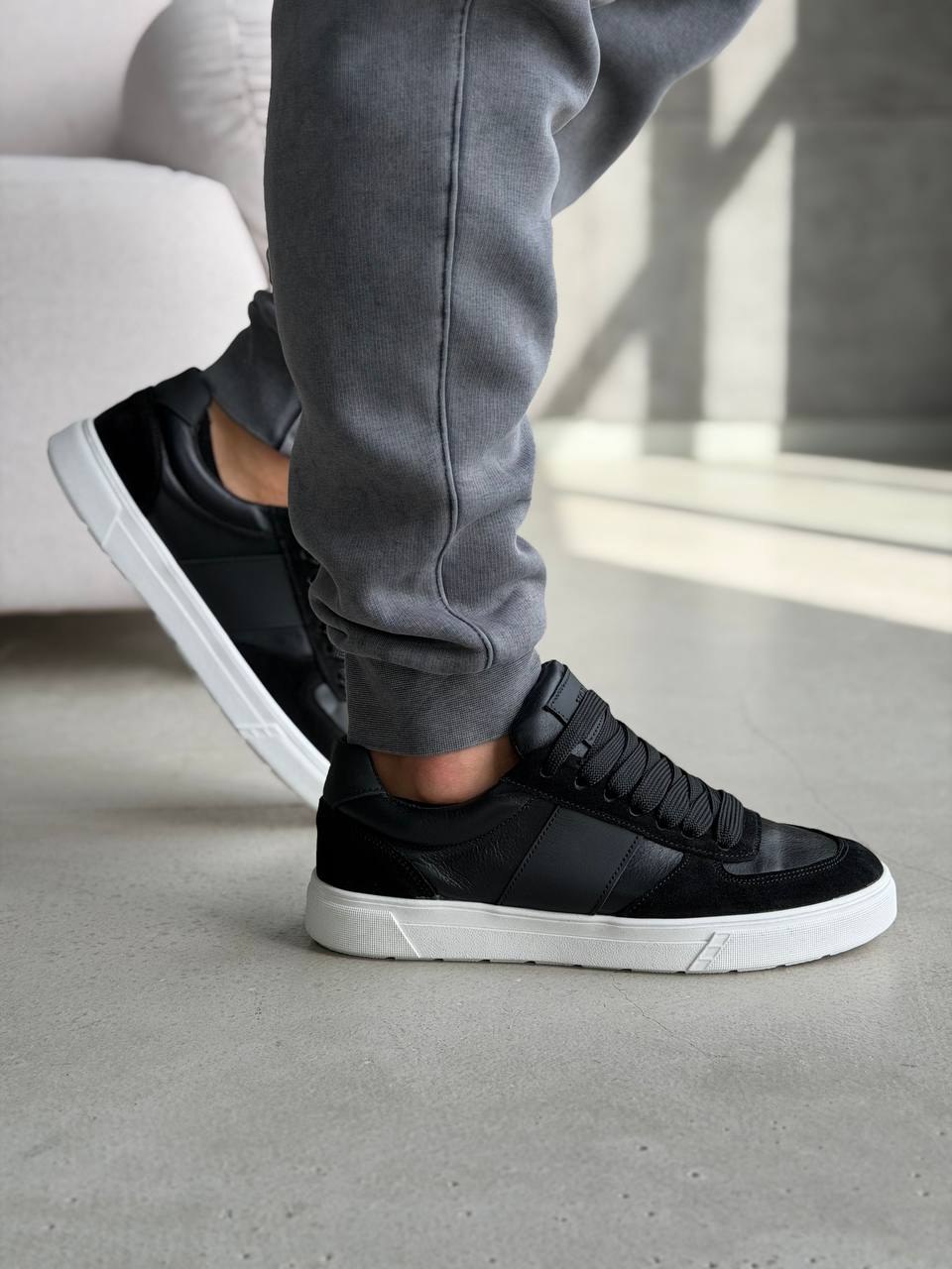 Чоловічі кеди для осені з натуральної шкіри - поєднання стилю, зручності та практичності. Завдяки легкій підошві з ЕВА вони дарують комфорт навіть під час тривалих прогулянок, а широка шнурівка додає сучасного акценту та надійної фіксації. Лаконічний дизайн робить їх універсальними: вони гармонійно доповнять як повсякденний, так і більш вишуканий образ. Ідеальний вибір для динамічного міського життя.