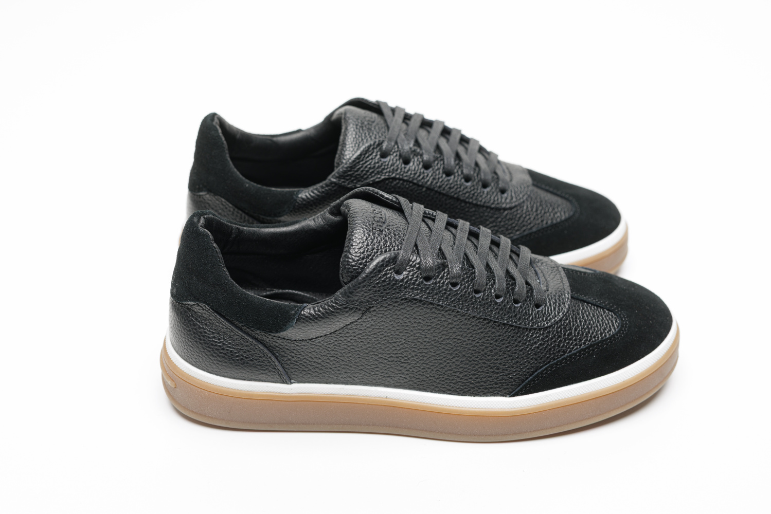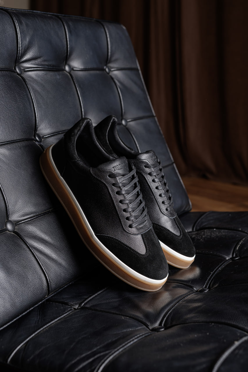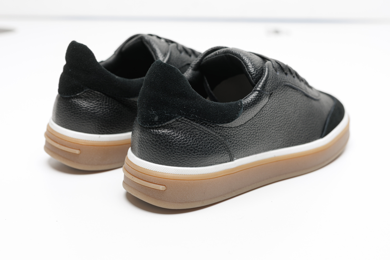 Чорні чоловічі кеди з натуральної шкіри в стилі casual. Мінімалістичний дизайн легко поєднується з джинсами, брюками, футболками, сорочками чи легкими светрами. Це практичний варіант для міських прогулянок, подорожей, зустрічей із друзями або роботи у невимушеному форматі.