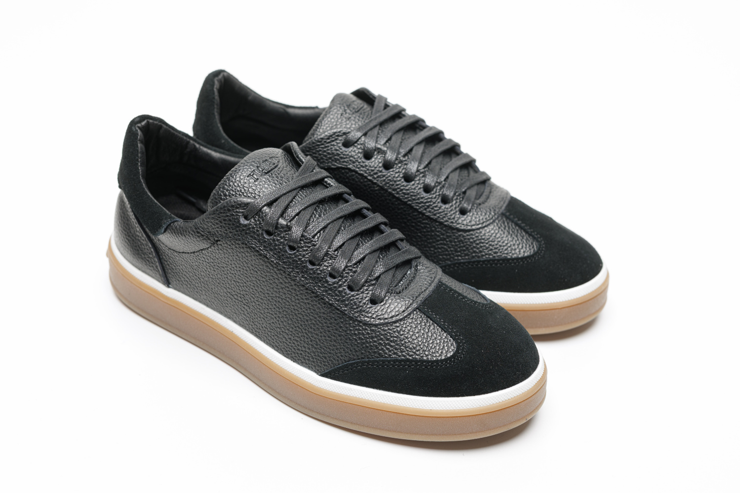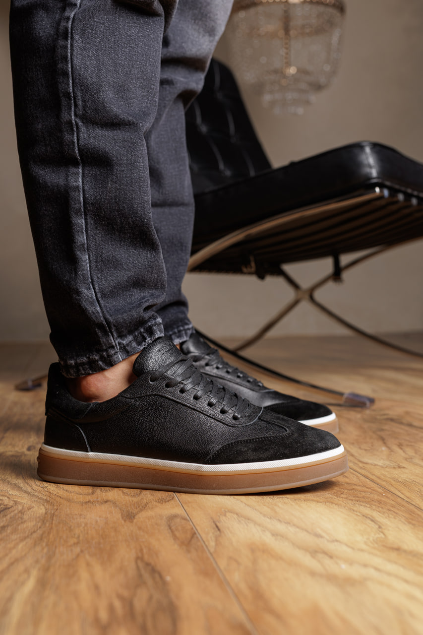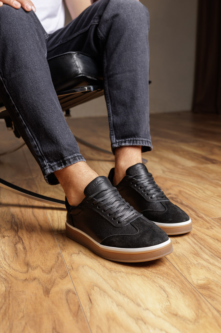 Чорні чоловічі кеди з натуральної шкіри в стилі casual. Мінімалістичний дизайн легко поєднується з джинсами, брюками, футболками, сорочками чи легкими светрами. Це практичний варіант для міських прогулянок, подорожей, зустрічей із друзями або роботи у невимушеному форматі.
