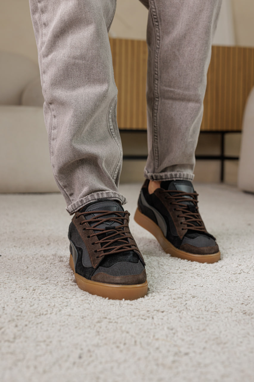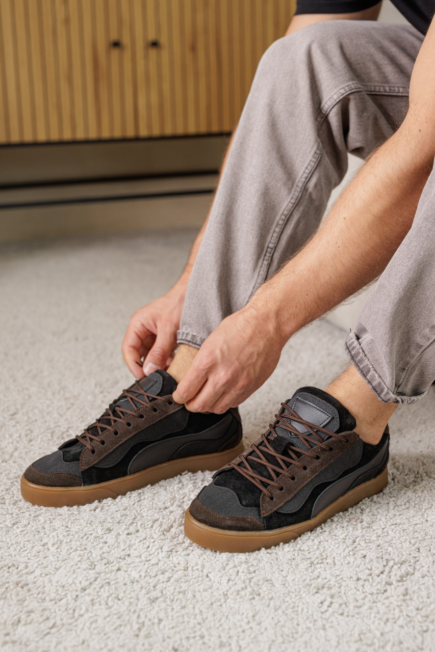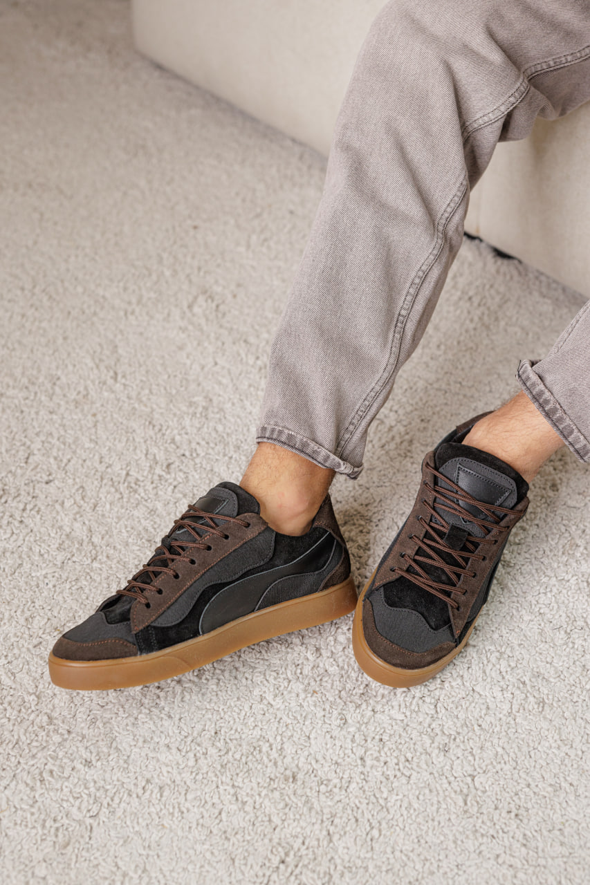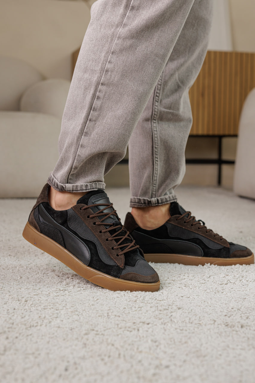 Коричнево-чорні кеди з натуральної шкіри - стильна класика