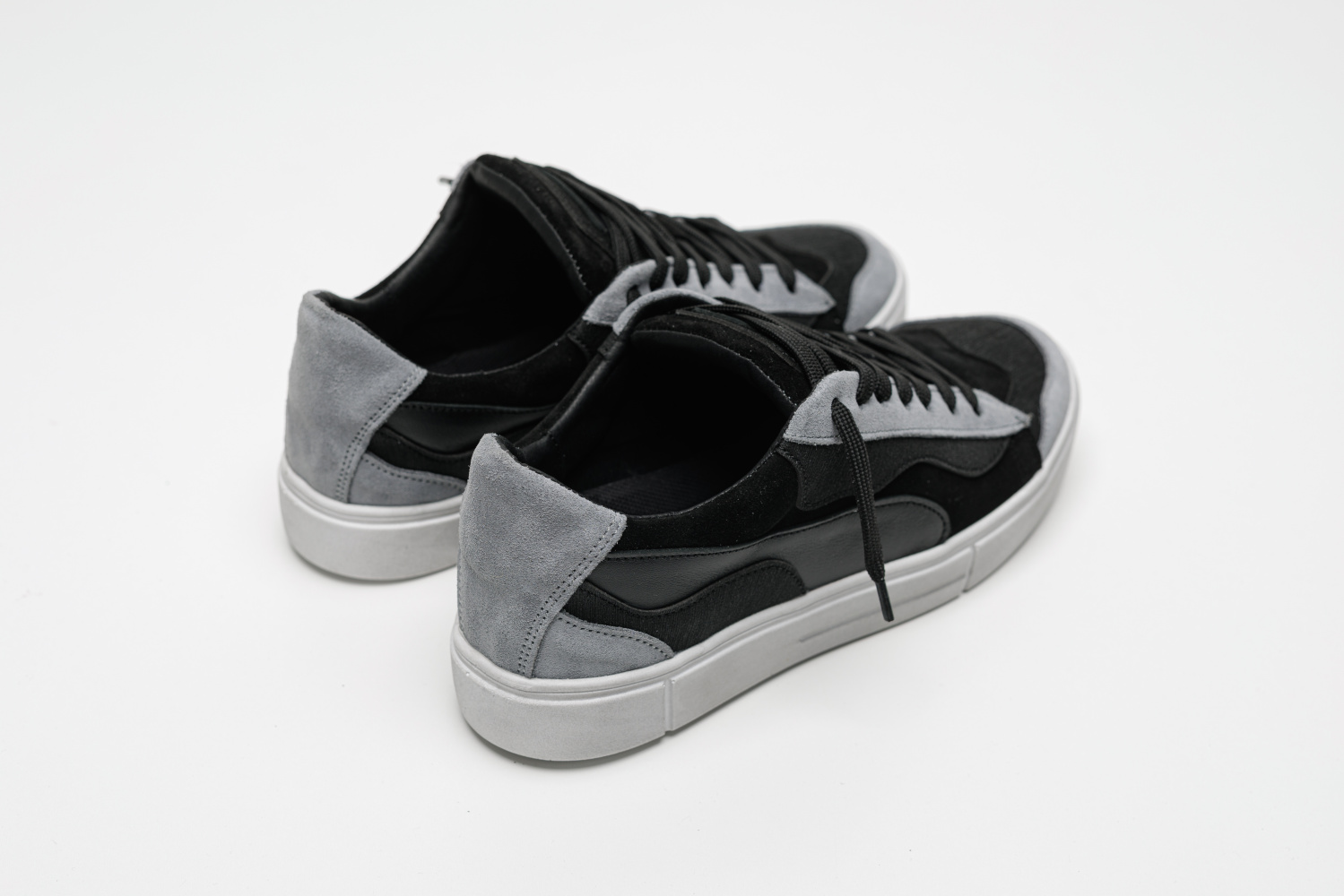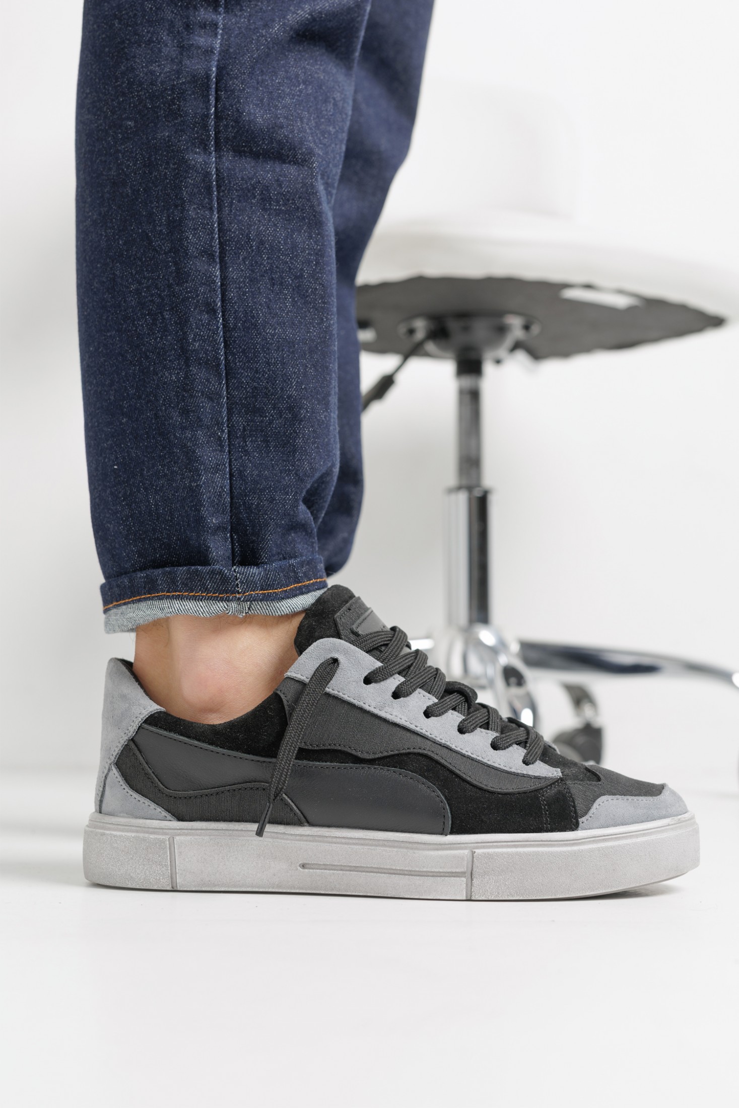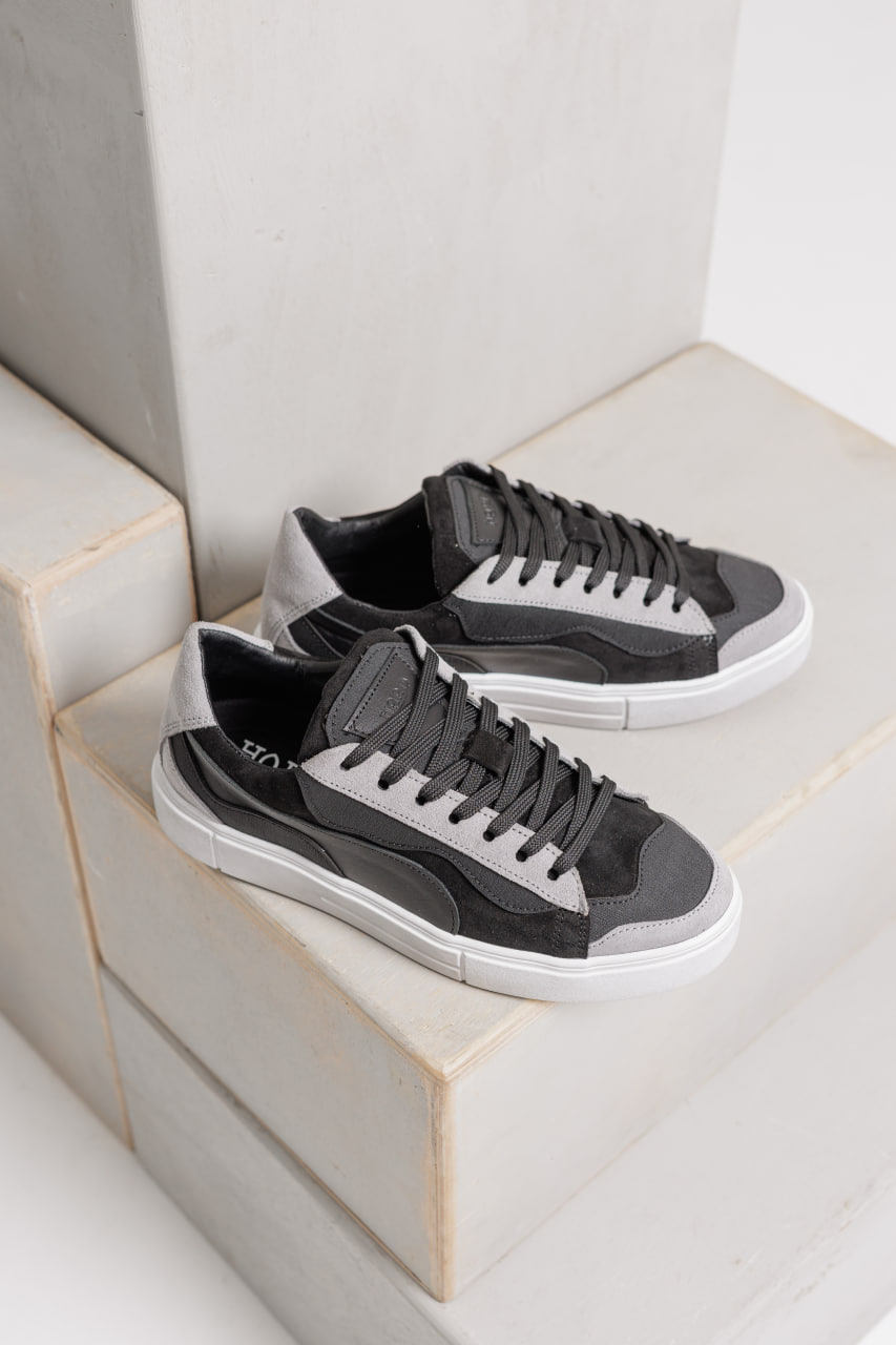 Універсальне поєднання сірого та чорного кольорів додає взуттю глибини та стилю, а контрастна біла підошва робить образ свіжим і сучасним.
