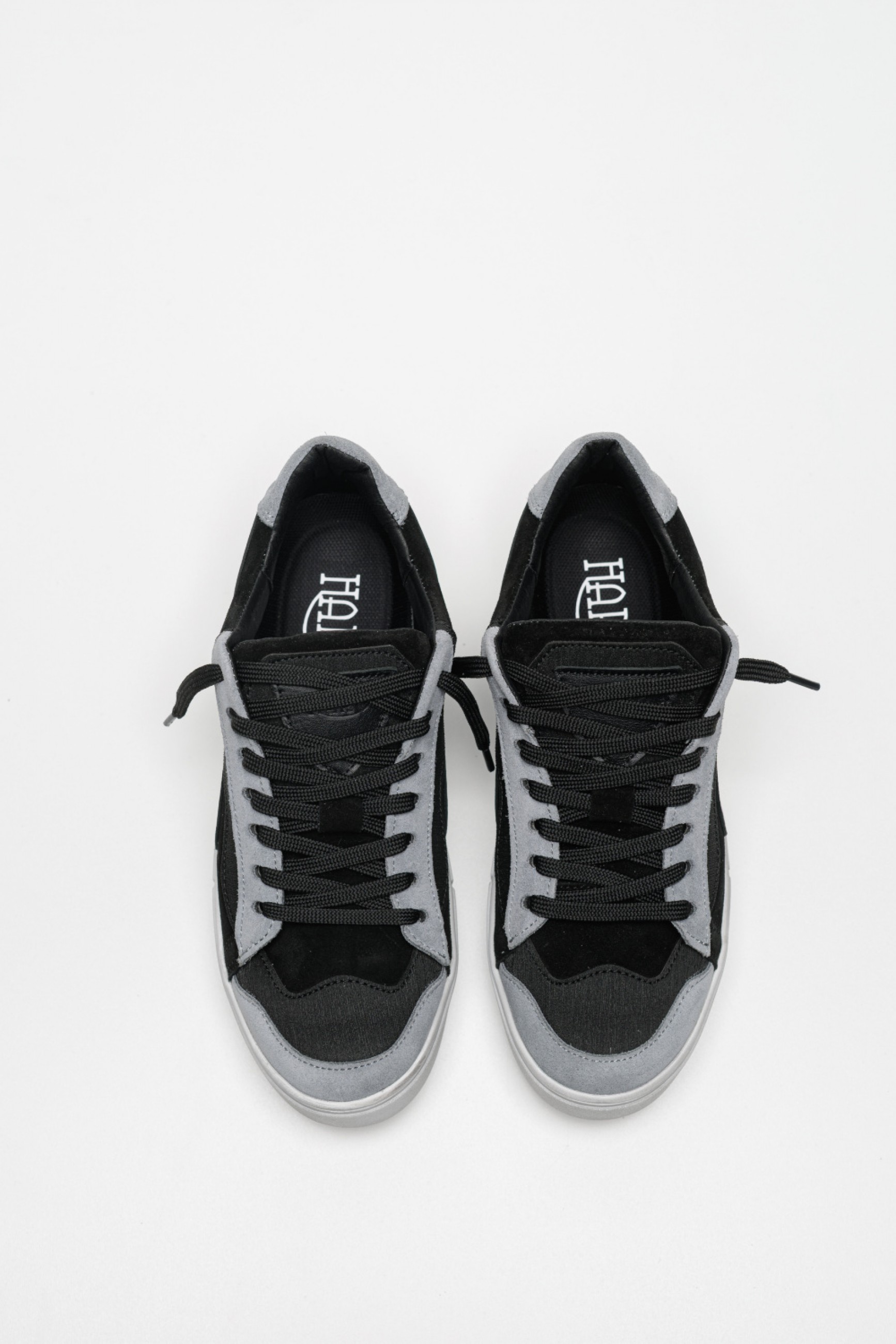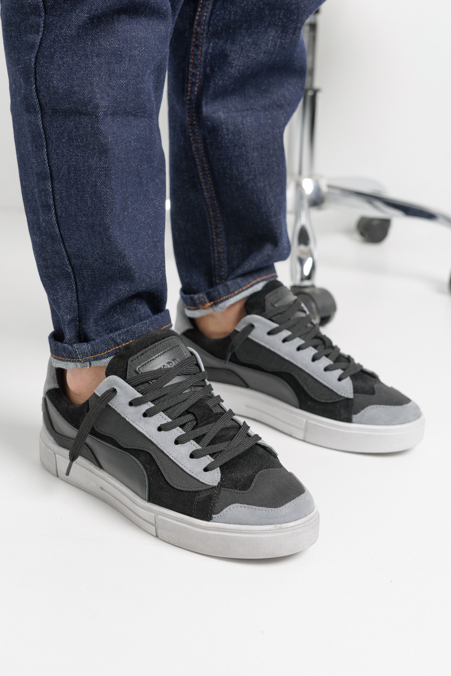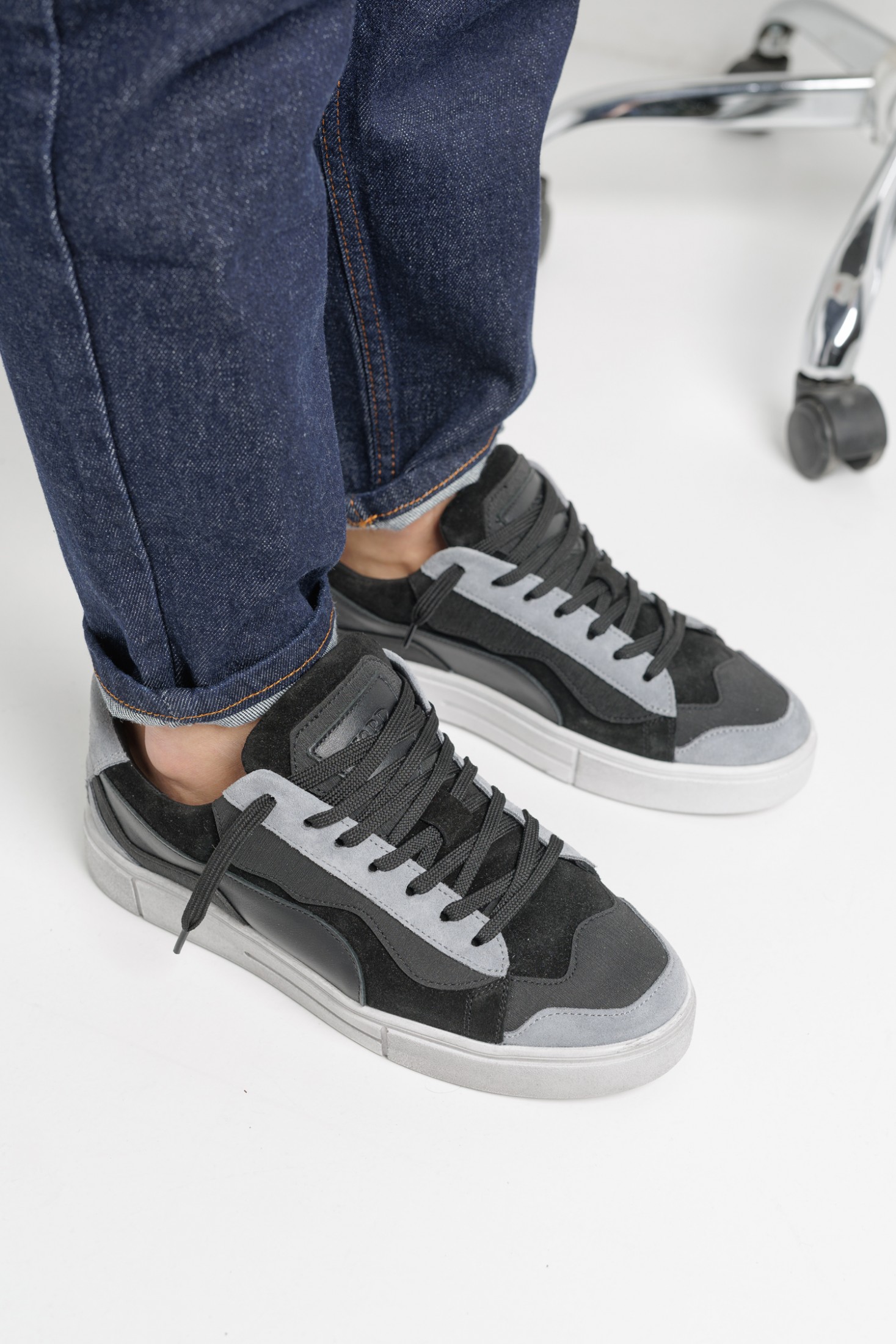 Універсальне поєднання сірого та чорного кольорів додає взуттю глибини та стилю, а контрастна біла підошва робить образ свіжим і сучасним.