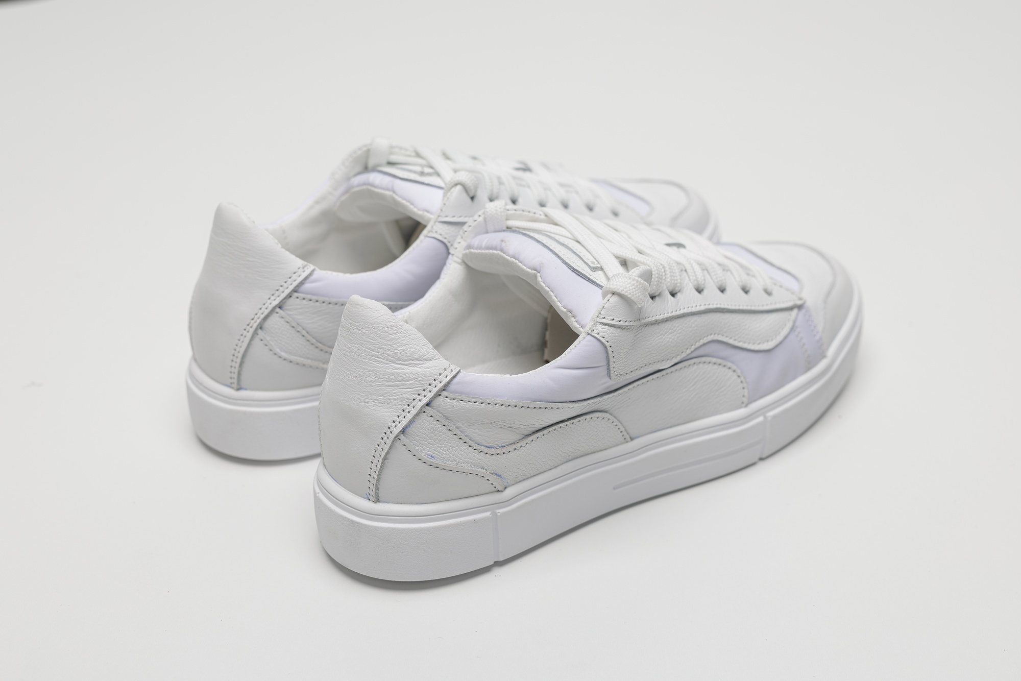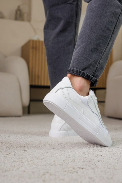 Кеди з натуральної білої шкіри — універсальна та стильна модель для повсякденного гардероба. Акуратний силует доповнений вставками, що створюють легкий контраст фактур і додають взуттю сучасного характеру, зберігаючи стриману естетику. Класична шнурівка забезпечує зручну посадку та надійну фіксацію стопи. Верх із натуральної шкіри відрізняється практичністю, зносостійкістю та комфортом у щоденному носінні. Легка світла підошва добре амортизує під час ходьби, сприяє стабільності та комфорту протягом усього дня. Модель гармонійно поєднується з джинсами, повсякденними брюками та casual-образами, що робить її вдалим вибором для міського ритму, прогулянок і активного щоденного використання.