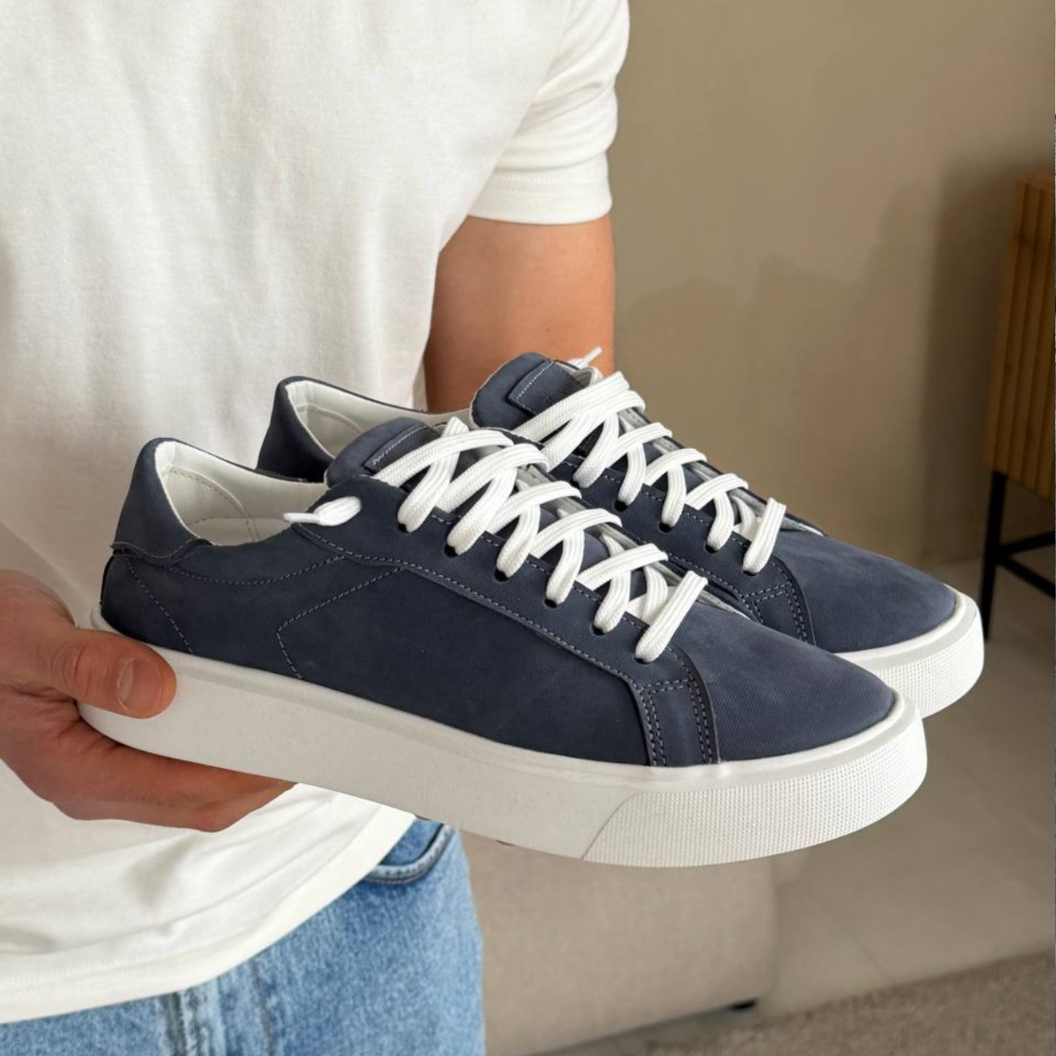 Кеди з нубуку — стильна та універсальна модель для щоденного використання. Верх виконаний із якісного нубуку, який має приємну матову текстуру та виглядає акуратно й дорого. Матеріал м’який, але водночас достатньо міцний, добре тримає форму та комфортно адаптується до стопи. Контрастна біла підошва додає свіжості образу й забезпечує зручність під час ходьби. Лаконічний дизайн легко поєднується з джинсами, чіносами або спортивним стилем. Ідеальний вибір для тих, хто цінує комфорт, практичність та сучасну естетику.