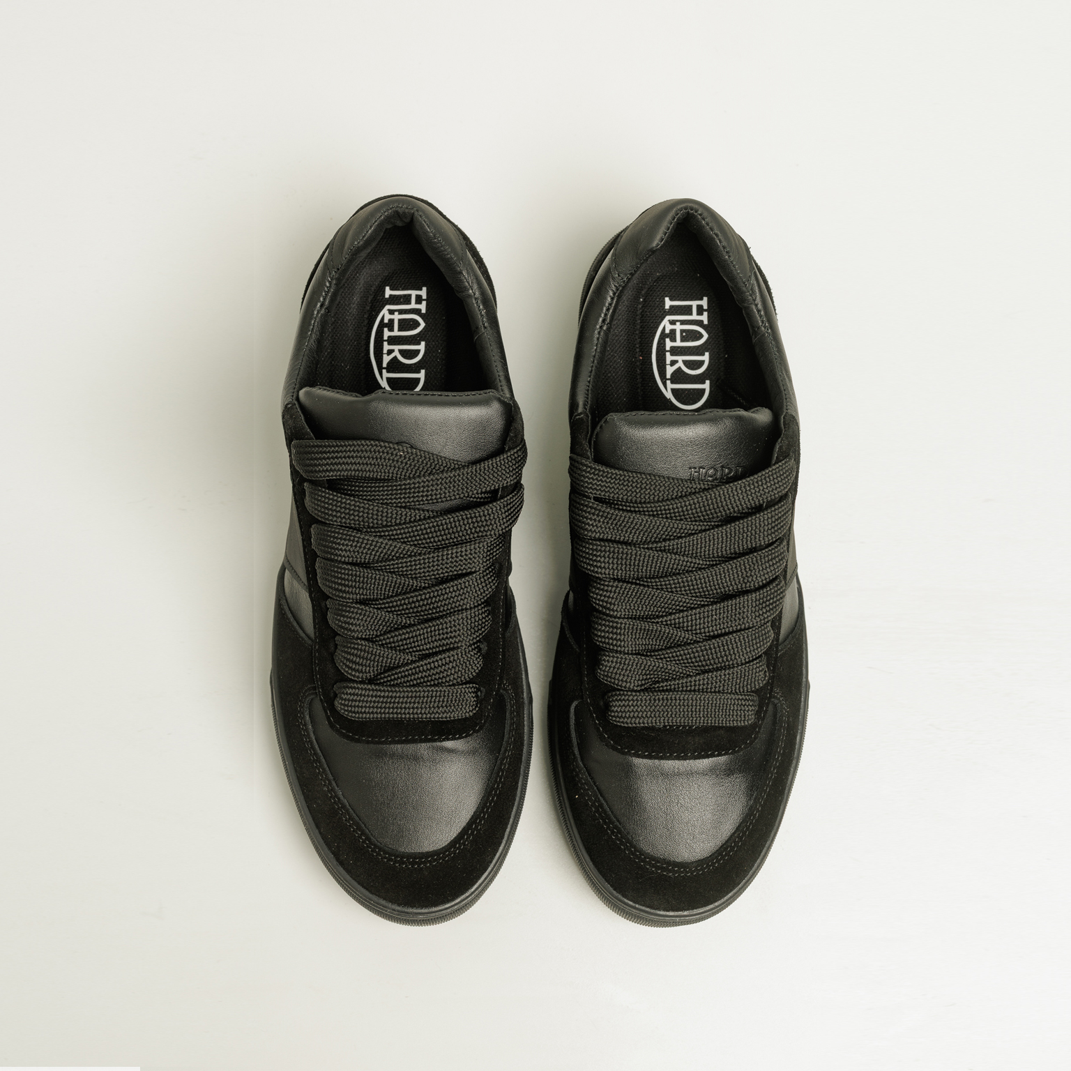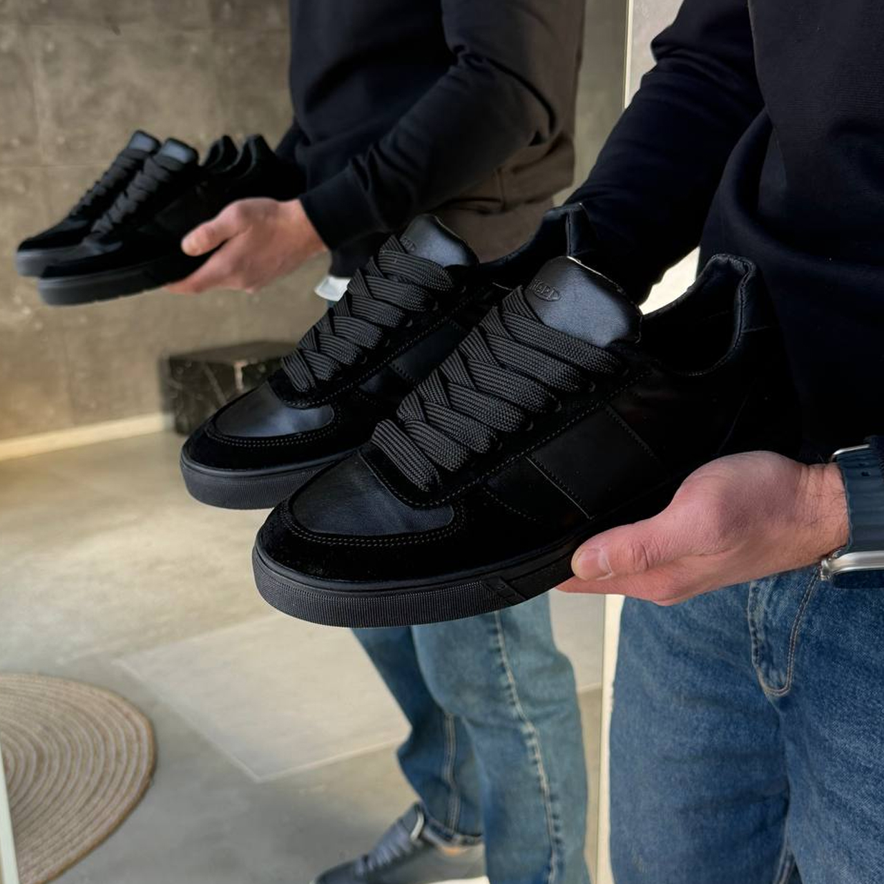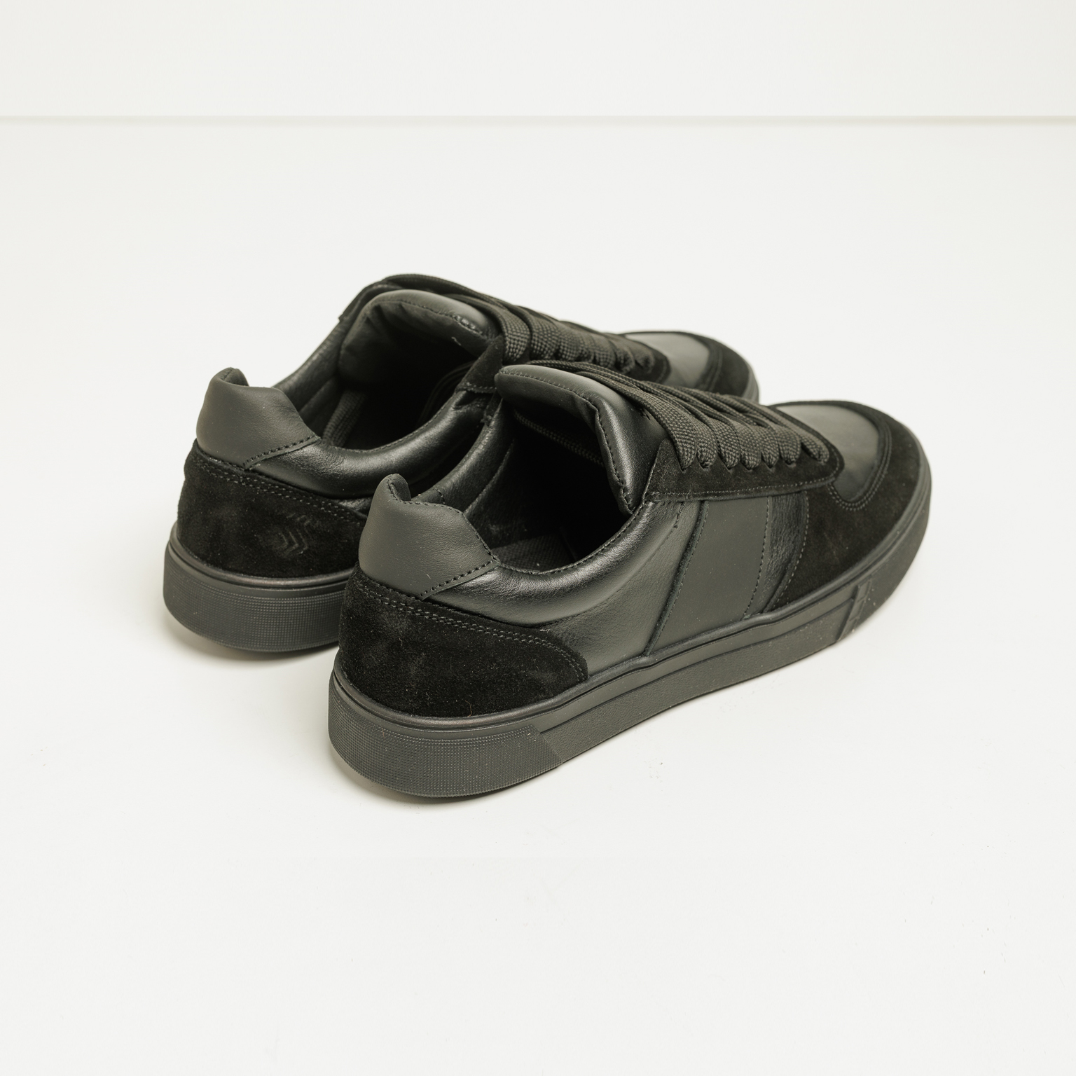 Повністю чорні кеди зі шкіри та замшевих вставок — універсальна модель для стильних повсякденних образів. Виготовлені з поєднання натуральної шкіри та м’якої замші, що забезпечує комфорт, зносостійкість і акуратний вигляд. Лаконічний чорний колір додає взуттю стриманої елегантності та легко поєднується з будь-яким гардеробом. Зручна посадка та м’яка підошва гарантують комфорт протягом усього дня. Ідеальний вибір для міських casual-луків у будь-яку пору року.