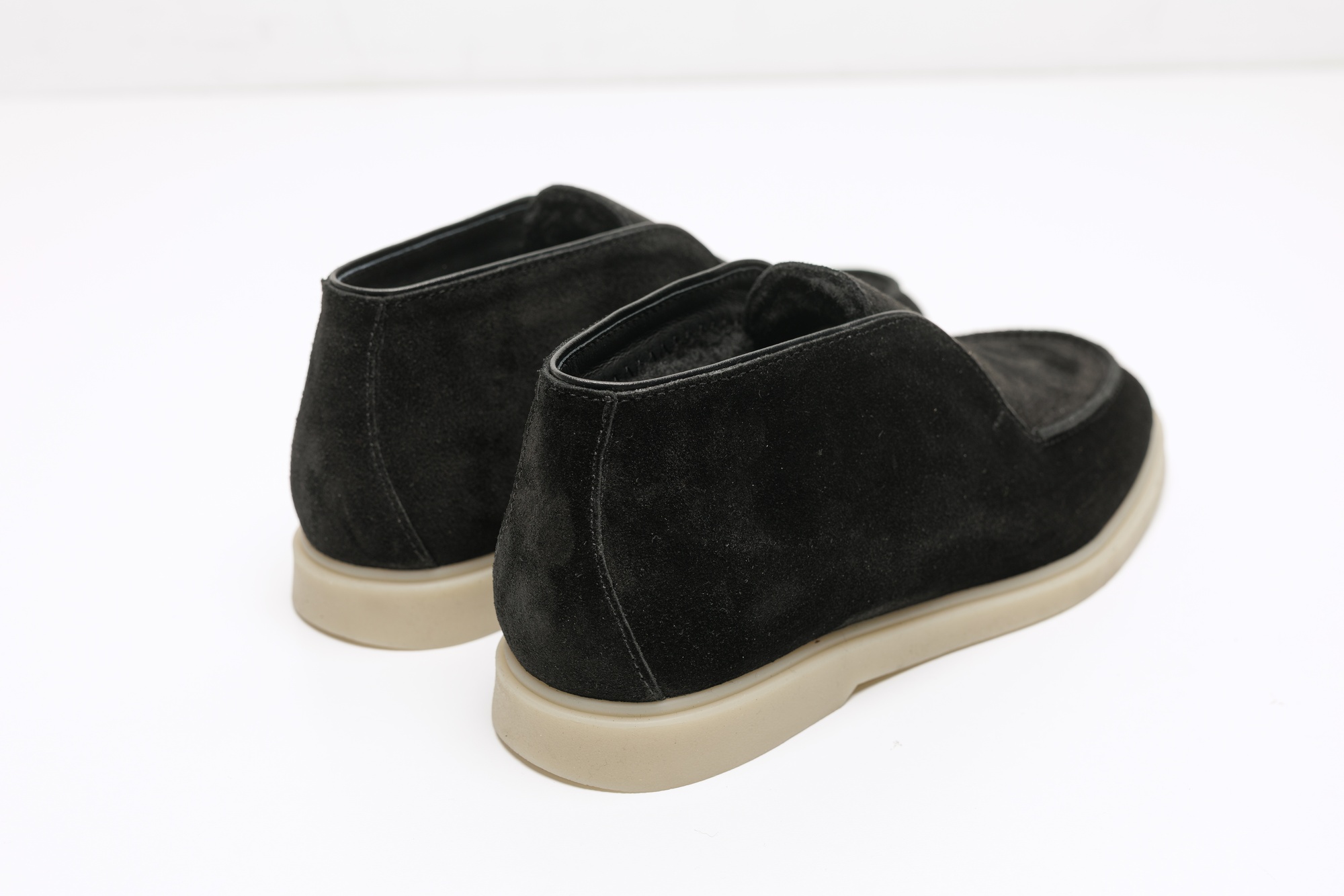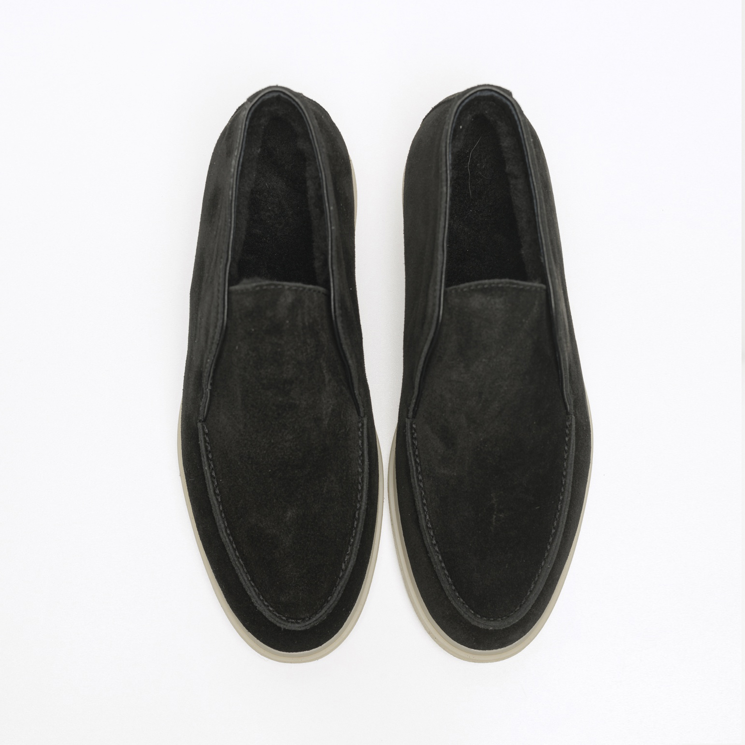 Чоловічі високі лофери з натуральної чорної замші на хутрі — стильне та практичне рішення для холодної пори року. Внутрішнє оздоблення з м’якого хутра забезпечує тепло та комфорт навіть у прохолодну погоду, зберігаючи при цьому відчуття затишку протягом усього дня. Натуральна замша додає взуттю преміального вигляду, а лаконічний дизайн робить модель універсальною для повсякденних і більш стриманих образів. Зручна посадка, гнучка підошва та продуманий крій гарантують комфорт під час ходьби. Ідеальний вибір для тих, хто цінує стиль, тепло та практичність.