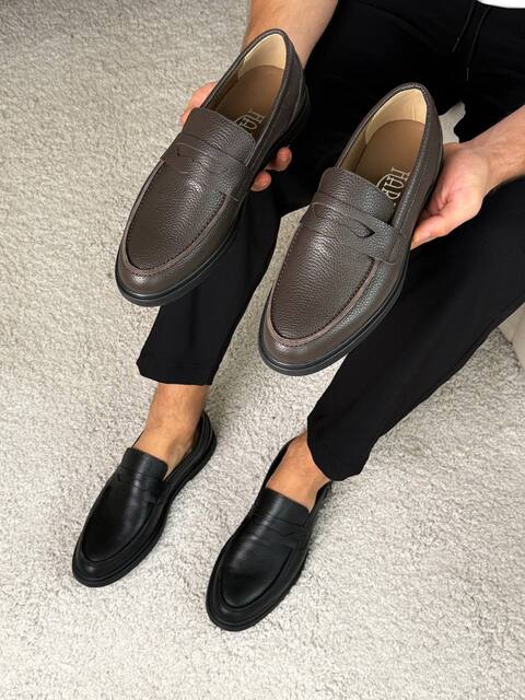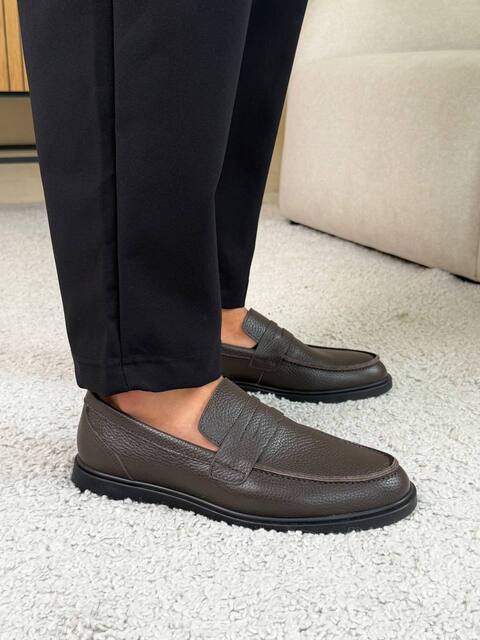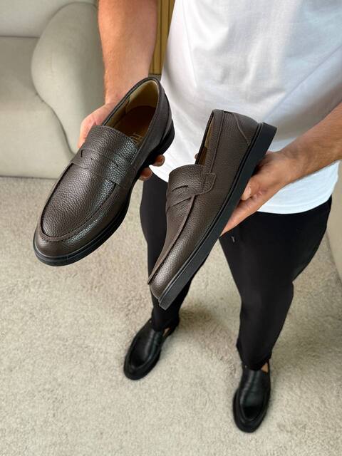 Чоловічі лофери з натуральної шкіри з коричневим верхом і чорною підошвою — стильне рішення у форматі casual та smart-casual. Акуратний силует у поєднанні з контрастною чорною підошвою надає моделі стриманого та водночас сучасного вигляду. Коричневий колір верху виглядає стримано й легко поєднується з джинсами, чіносами або класичними брюками, а також з сорочками, поло чи повсякденними светрами. Натуральна шкіра забезпечує комфорт і довговічність, а поліуретанова підошва — легкість та амортизацію під час ходьби. Ці лофери стануть універсальним вибором для щоденного носіння, роботи в офісі, прогулянок містом або подорожей.