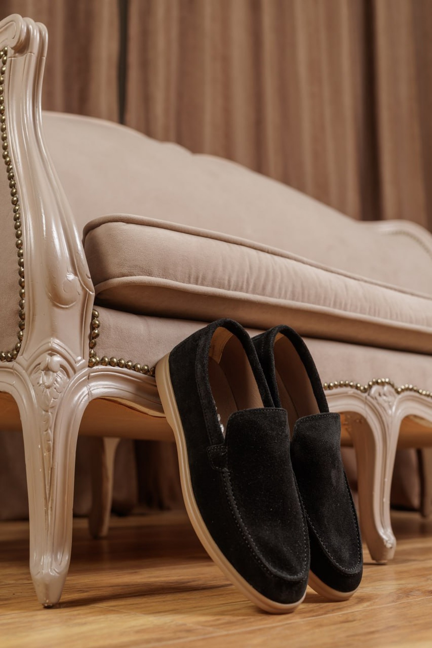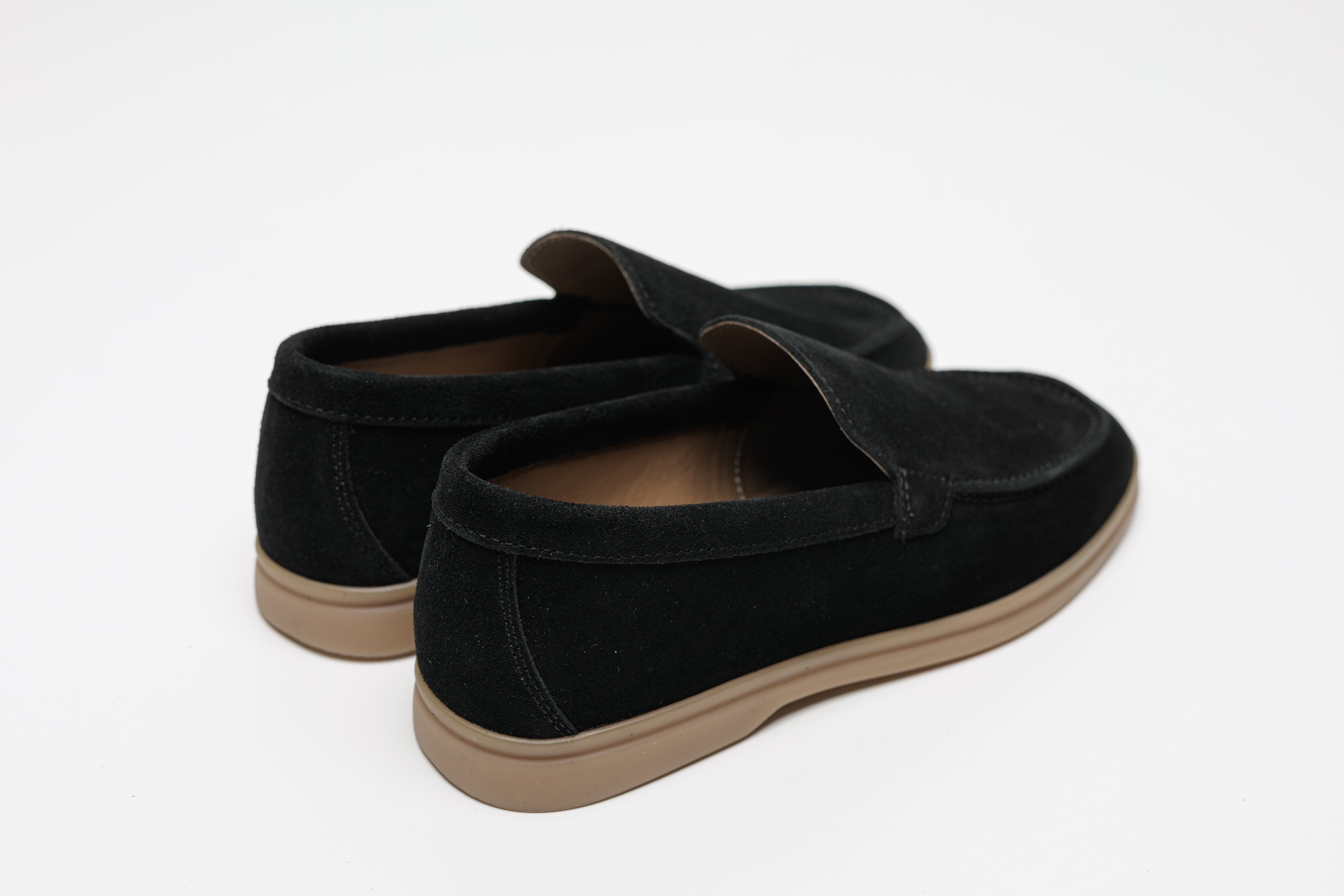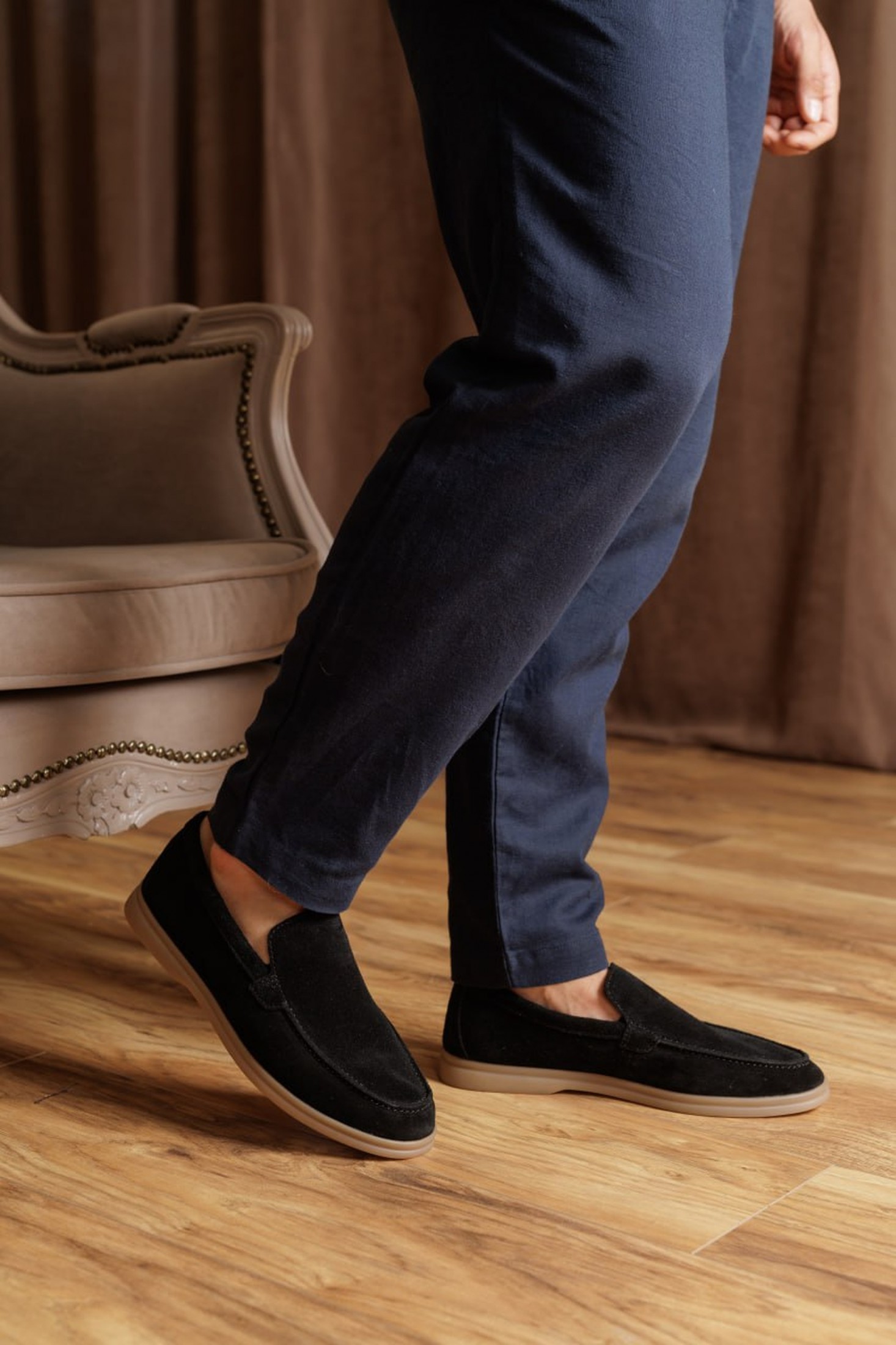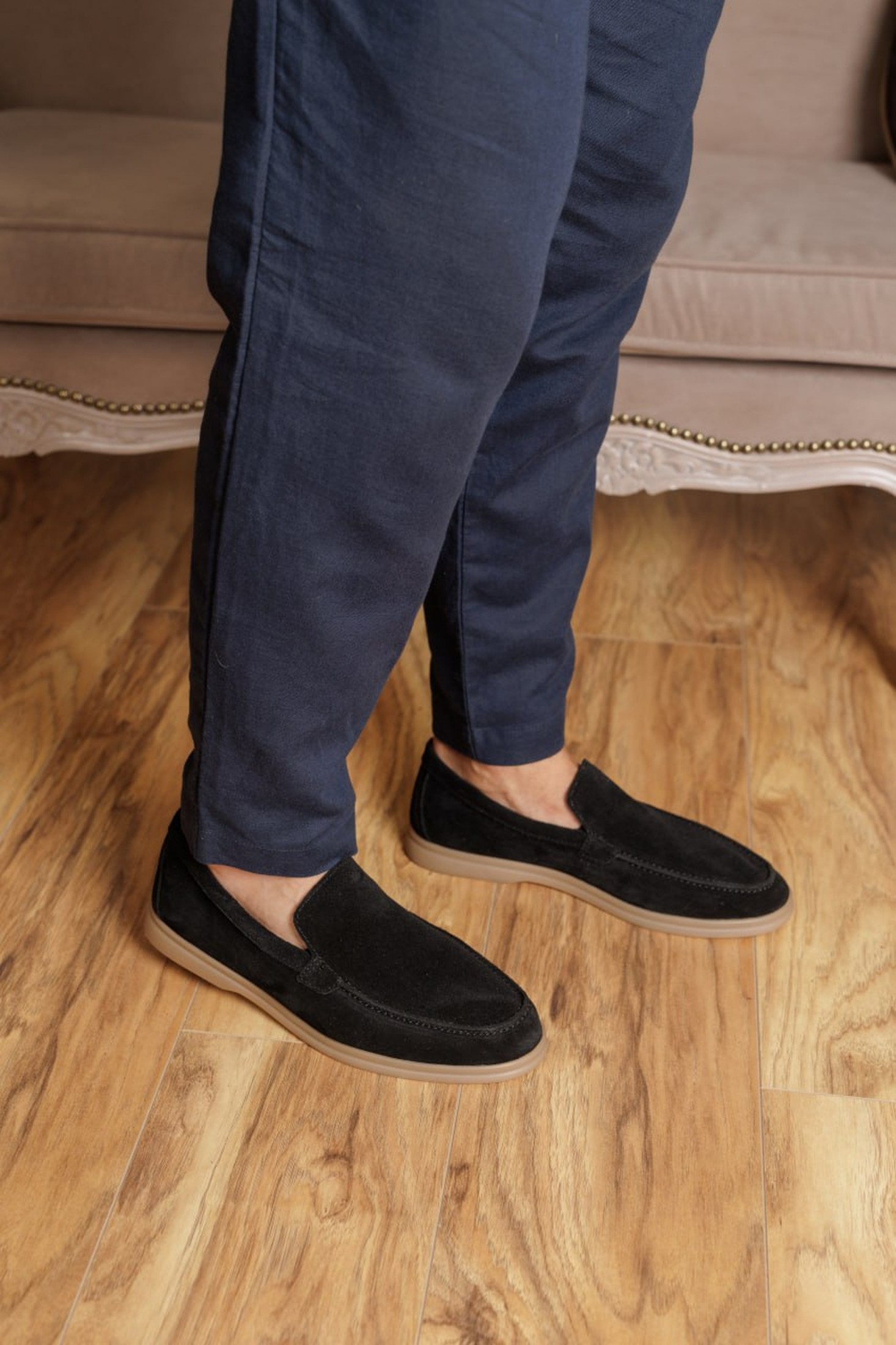 Чоловічі лофери з натуральної замші чорного кольору з контрастною світло-коричневою підошвою — стильне й сучасне поєднання для образів у стилі casual і smart-casual. Модель має лаконічний силует з акуратною рядковою прострочкою, що робить її стриманою, але виразною завдяки контрасту між чорним замшевим верхом та світлою підошвою. Чорна замша виглядає елегантно й легко комбінується з джинсами, чіносами або класичними брюками, а також з сорочками, поло чи повсякденними светрами. Натуральна замша забезпечує приємні тактильні відчуття і комфорт, а світло-коричнева поліуретанова підошва гарантує легкість, амортизацію та зносостійкість під час щоденного носіння. Ідеальний варіант для офісу, міських прогулянок, поїздок і повсякденного використання.