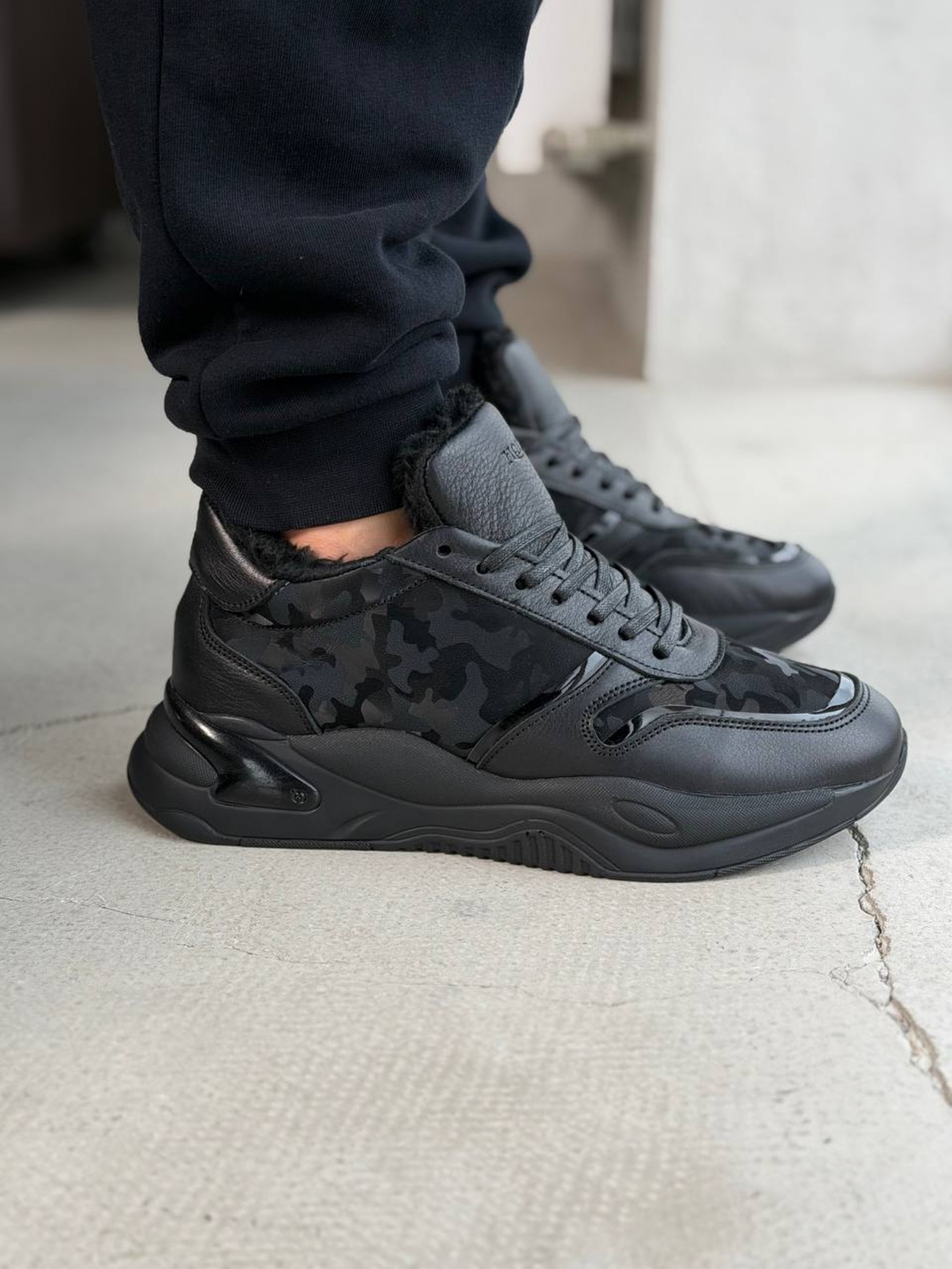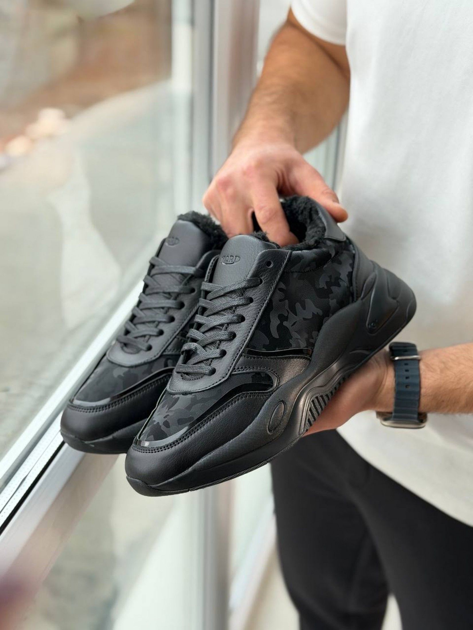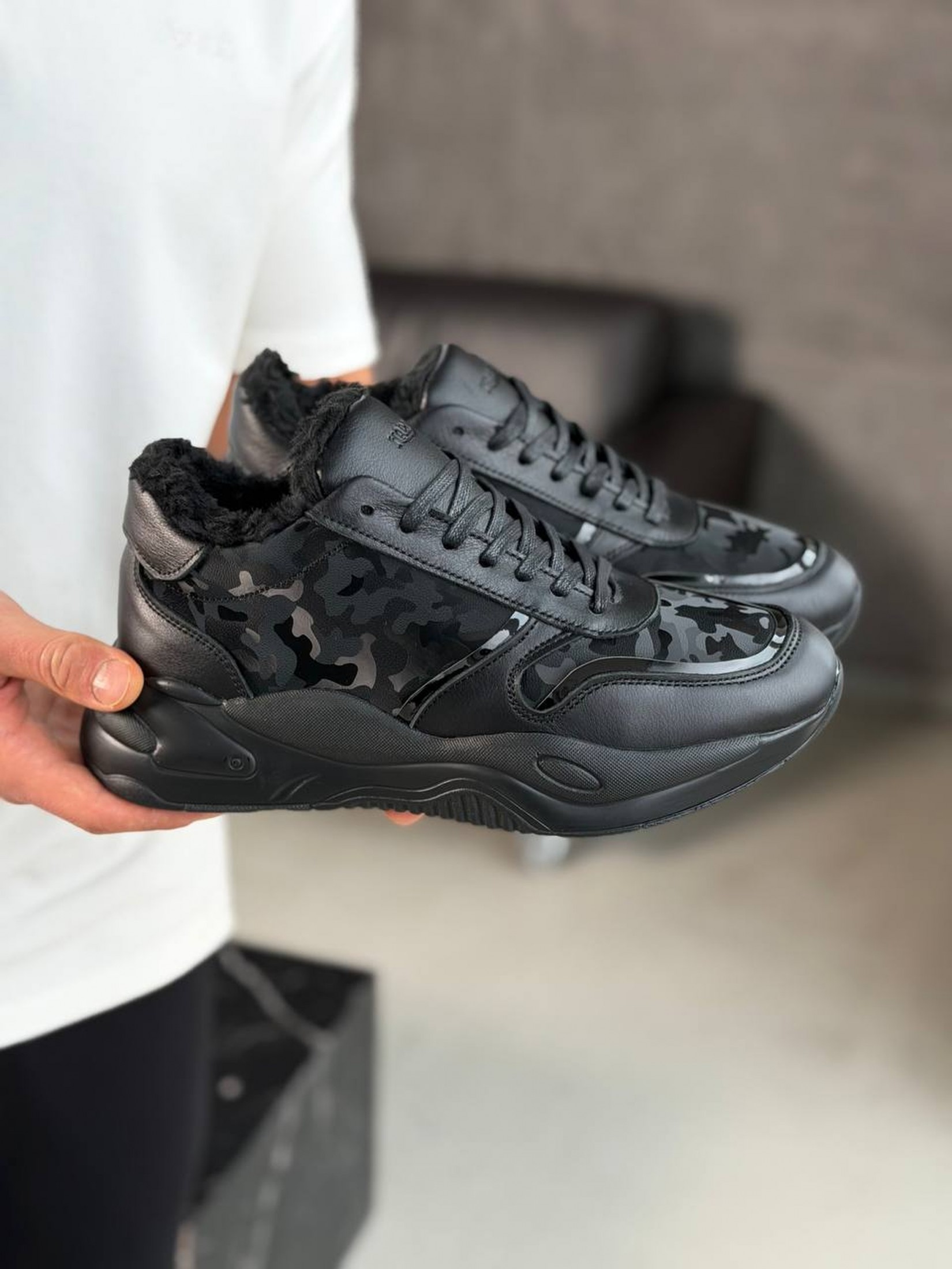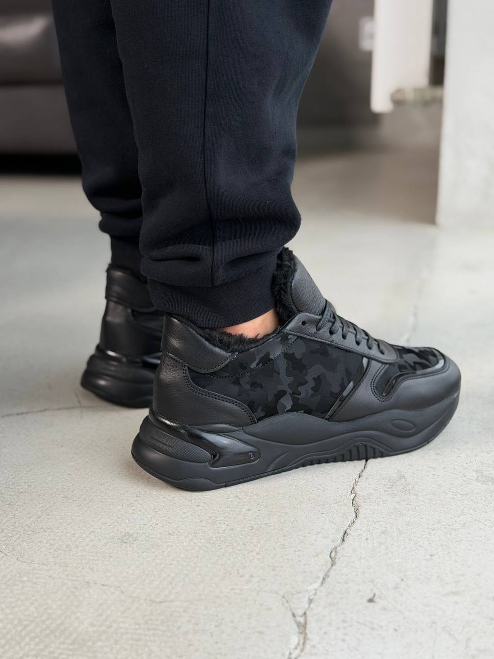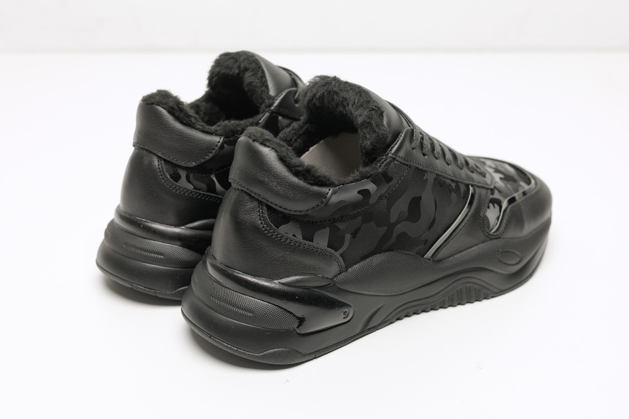 Кросівки створені для тих, хто не звик зупинятися через дощ чи холод. Завдяки щільному внутрішньому хутру вони надійно утримують тепло навіть при низьких температурах, забезпечуючи максимальний затишок під час зимових прогулянок. Масивна ергономічна підошва гарантує впевнене зчеплення на засніжених поверхнях та відмінну амортизацію при кожному кроці. Поєднання міцних матеріалів і стильного чорного камуфляжу робить цю пару ідеальним вибором для тих, хто цінує тепло, комфорт та надійність у зимовий період.