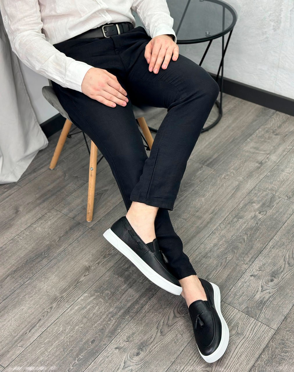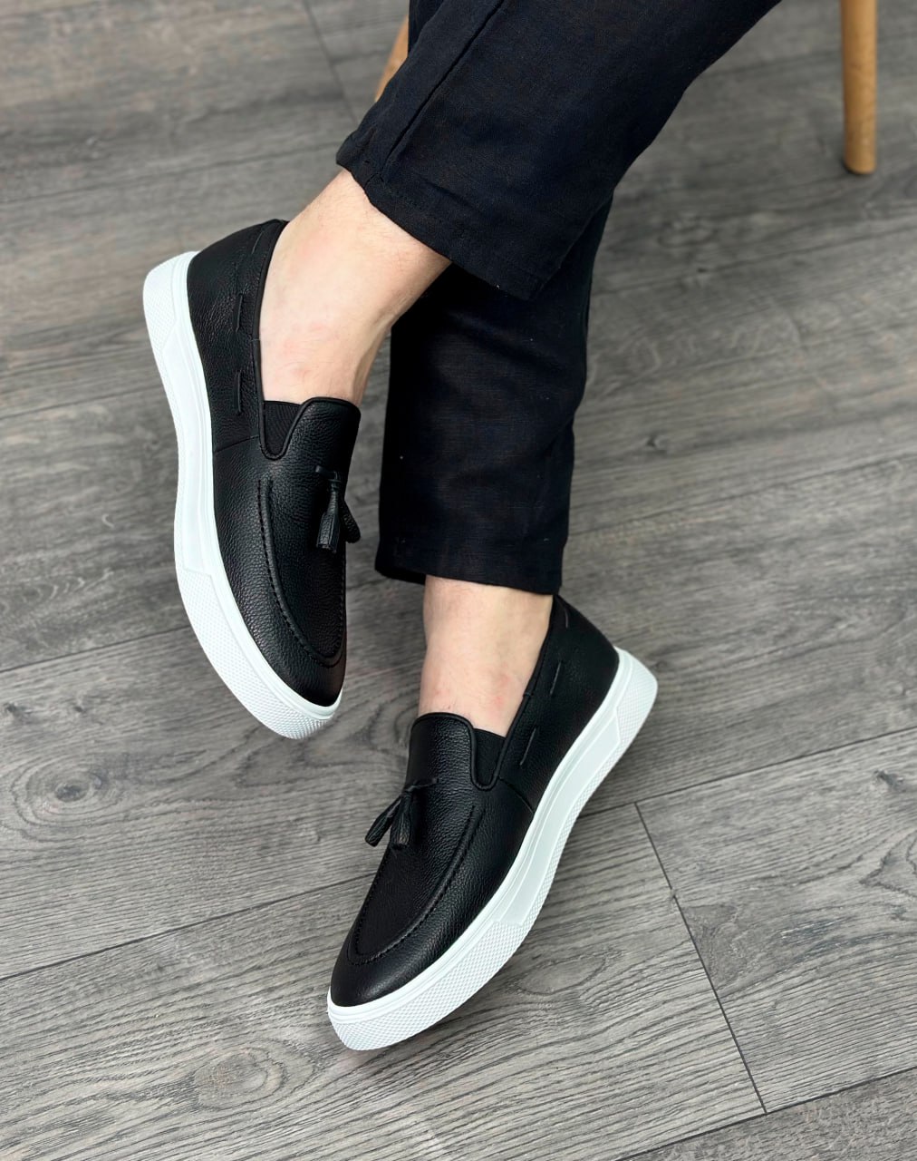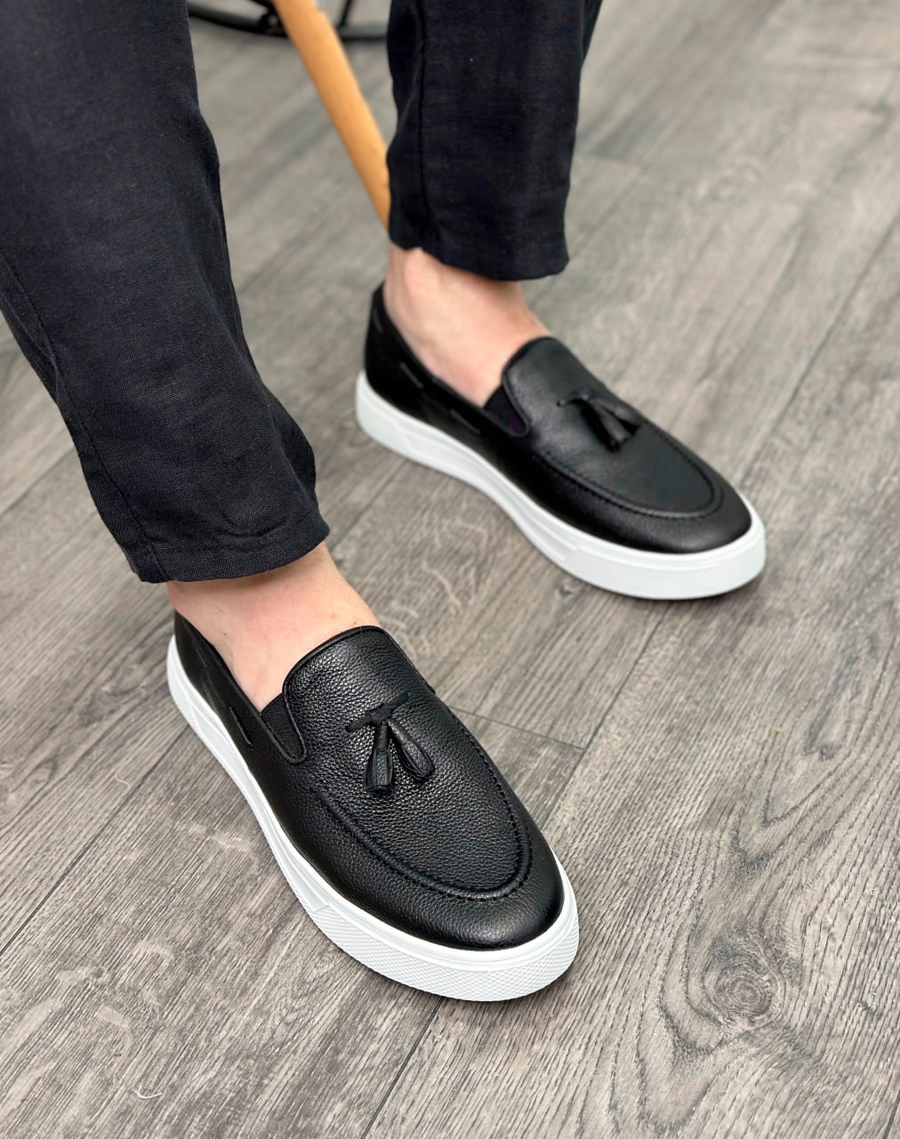 Стильна інтерпретація класики. Верх взуття виконаний з високоякісної натуральної шкіри з вираженою зернистою текстурою, що додає моделі солідності та зносостійкості. Масивна біла підошва не тільки створює яскравий візуальний акцент, але й забезпечує м'якість та комфорт при ходьбі.
