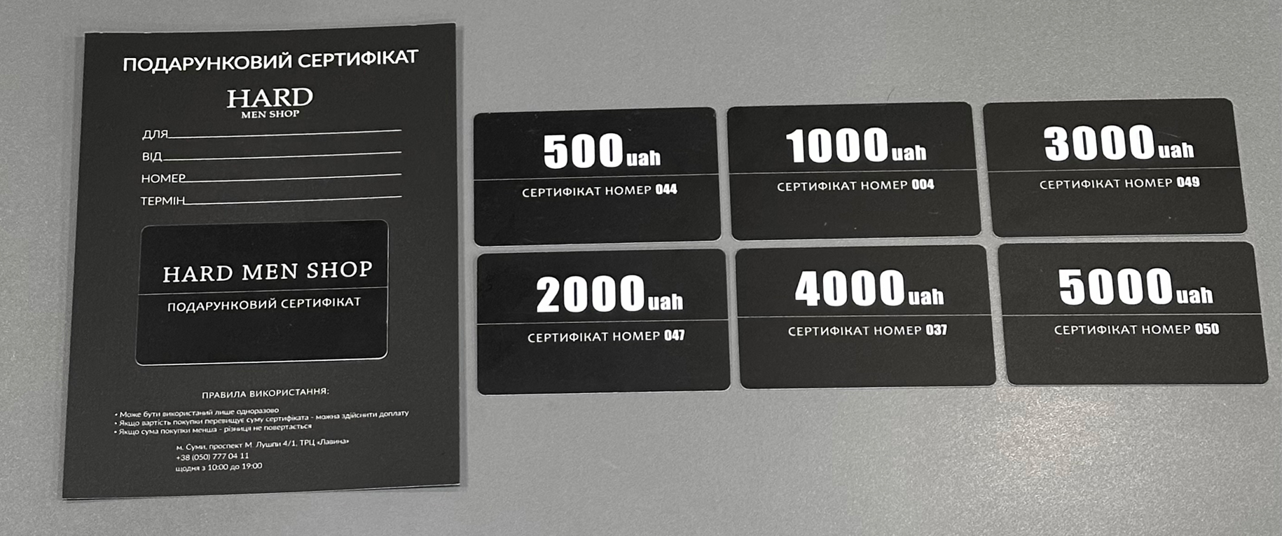 У магазині HARD доступні подарункові сертифікати номіналом від 500 до 5000 грн.